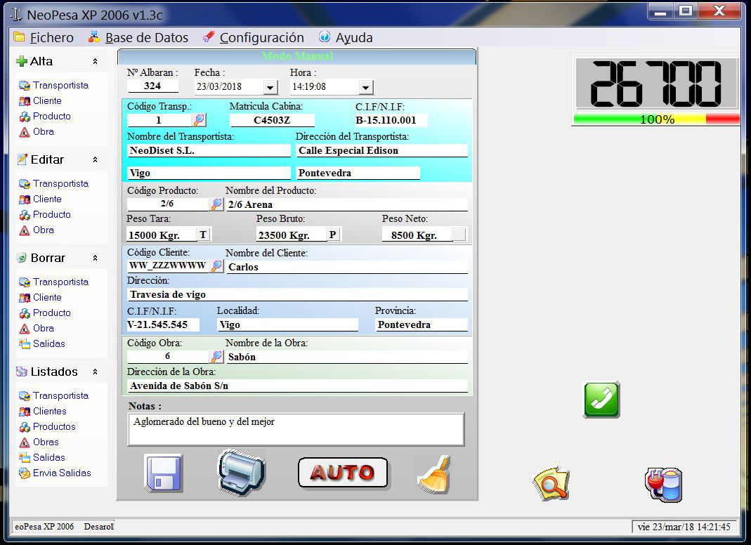 → Se trata de un programa que automatiza el pesaje y control de vehiculos que realizan la salida o entrada de materiales en su empresa.
